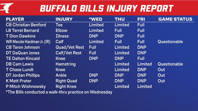 Buffalo Bills Injury Report: Week 16 vs Cleveland Browns