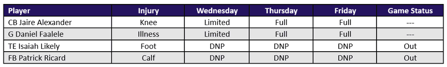 The Baltimore Ravens injury report isn’t much prettier. Pro Bowl fullback Patrick Ricard and tight end Isaiah Likely are officially ruled out, shrinking Lamar Jackson’s toolbox in a game where every weapon matters. Their absence could affect both the Ravens’ run game and their play-action versatility. Add that to Baltimore’s current IR list that is headlined by safety Ar’Darius Washington, and the return of the always ailing cornerback Jaire Alexander, the Ravens have enough injuries to create disruption as well.