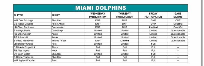NFL Injury Report Week 10: Buffalo Bills vs Miami Dolphins