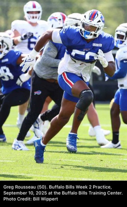 DE Greg Rousseau; Groot was limited in practice Wednesday and Thursday with a knee issue but returned to full participation Friday. He played his usual 2024 snap-share pace last week, logging 35 snaps (69%). Rousseau was seen wearing a compression sleeve on his right knee in practice this week but nevertheless is expected to go Sunday.